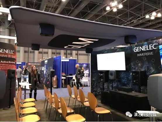 在展馆展示区,各参展商的展示区域普遍不大,布置也很简洁,以展示企业的核心技术、产品及系统解决方案为主,如荷兰真力(Genelec)展示了沉浸式的影院音频系统解决方案;AVID则给出了制作系统的沉浸式解决方案;美国BOSE展示了会议用吸顶扬声器及其配套的传输设备,其独特的声学结构可准确地覆盖会场指定的区域;英国PMCSpeakers公司也展示了具有专门研发的声学构造的监听扬声器。同时,主办方还设立了混音大师、现场扩声、应用软件等不同的会议区,供参展商介绍产品及其运用。值得注意的是,该展区为静音展区。