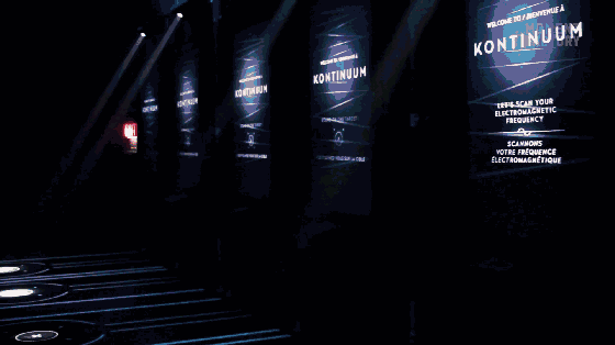 体验者首先需要被12台扫描仪3D扫描“个人身份”获得个人的成像视图,随后跟着人群,进入到一个想象的未来世界,体验一场感官刺激的视觉之旅。
