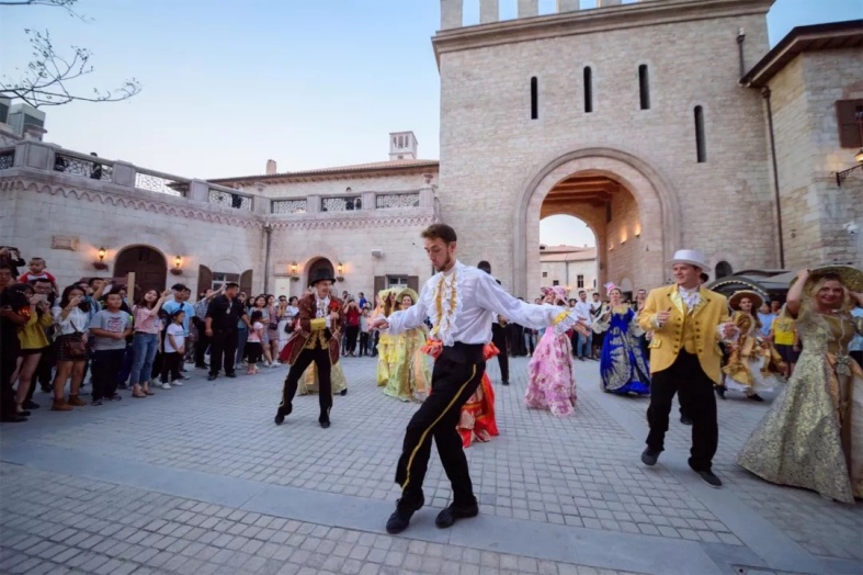 小镇内的圣马焦雷剧场,在设计上采用意大利建筑风格,将异国风情的精髓体现在细节中。同时,以富有特色和代表性的文化剧目为载体,向游客展示出意大利及长沙本土的文化特色,为游客带来难忘的娱乐体验。