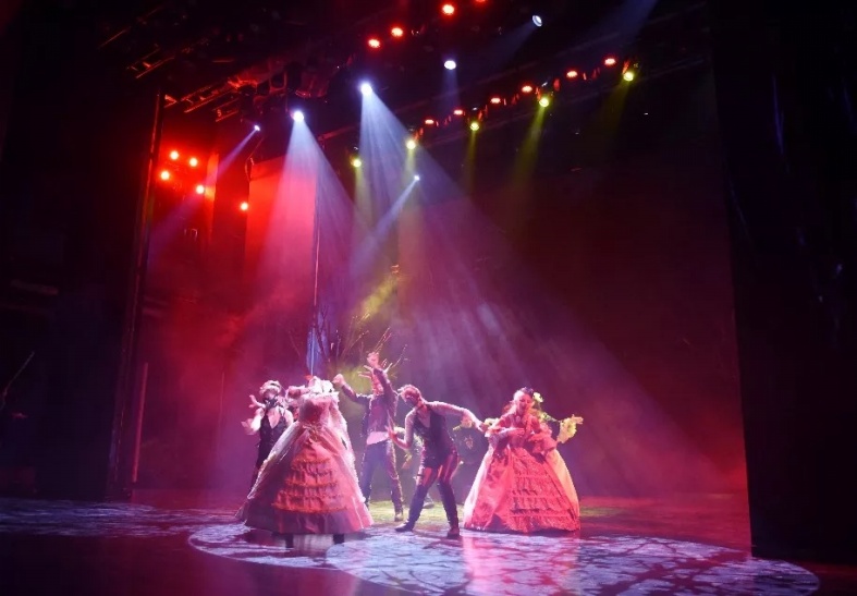极具异域风情的意大利魔幻剧在剧场内首演,明和先进的声光电系统为该剧营造出时光穿梭般的奇幻景象,在舞台灯光、显示屏、纱幕投影、舞台机械的相互配合与渲染表现之外,再加之参与式角色体验、沉浸式互动体验,带领全场观众穿越到了神秘的奇幻世界。